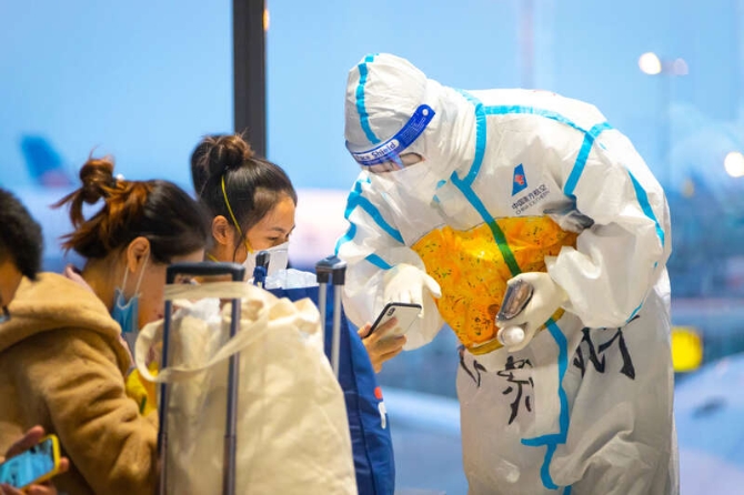 郭欣也是参与此次国际进港航班保障的员工之一。新冠肺炎疫情发生后,他主动请缨参与首班国际进港航班的保障,至今他仍然能回忆起第一次穿防护服的心情和状态。“现在大家的动作都熟练了,全套防护服穿下来只要5分钟。”郭欣说,每次保障完航班,脱下防护服时衣服全湿透了,头发都能拧出水来,手指也都泛白了,但旅客的一句句“谢谢”总能让郭欣感觉到开心和满足。