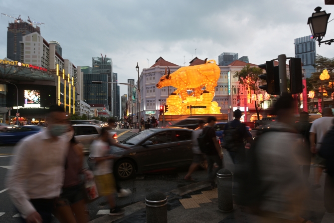 新加坡牛车水亮起农历新年灯饰