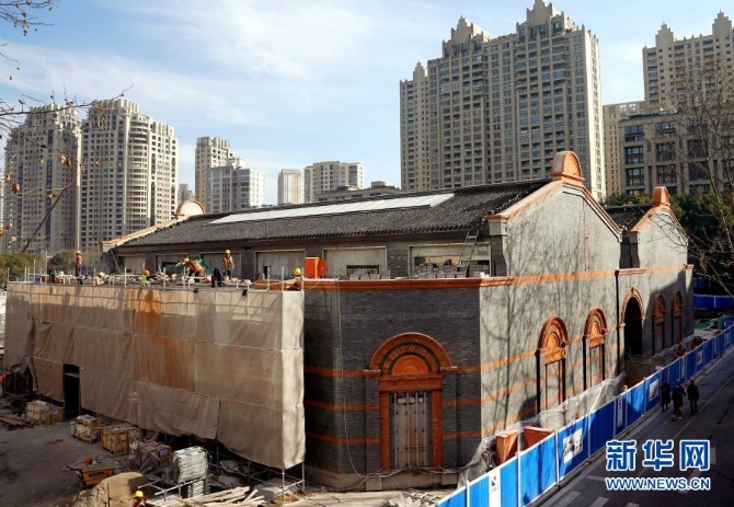 这是正在施工中的上海中共一大纪念馆(1月14日摄)。新华社记者 刘颖 摄