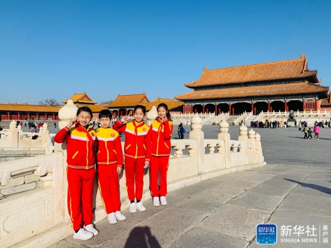 张焱林、肖恩、周诗琪、陈雨馨在故宫合影。(受访者供图)