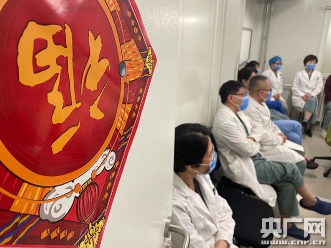 这个除夕,对宋美华和同事们来说,只是普通的工作日。上午,他们像往常一样地交接班。宋美华在电脑上更新每名患者的状态:最新的化验结果、用药情况。他们也都没有忘记这是特殊的一天。临时管理应急病区主任徐艳利在交接班的短会上说:“这一年的春节反正大家就这么开始了,也这么度过了。大家辛苦了。咱们既然从事了这个工作,现在病人逐渐都比较平稳了,病人数也在减少,要做好出院病人的一些工作,另外还要关注在院病人的思想状况,因为有些患者也是不能跟家人团聚,咱们要理解自己,也要理解他人。最后一句是祝大家新年愉快,也向家人问好。”