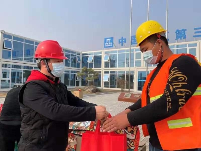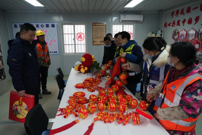 “几天前,项目上就举行了写春联、赠送文化大礼包、篮球比赛等活动,我们还领了干果、零食等年货礼包。想家是肯定的,不过和这么多工友一起过年,一点不孤单。”老家在湖北武汉的电工耿芝洋说,和工友一起包饺子、吃年夜饭、抢红包、表演节目……虽然留守建筑工地,但年味不减。