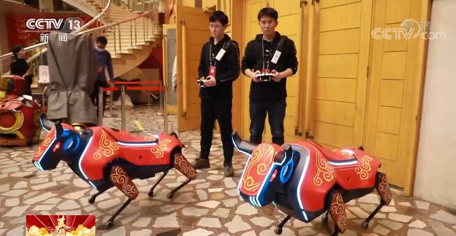 牛年春晚,在晚会后台的各个角落,随处可见机器牛的身影。