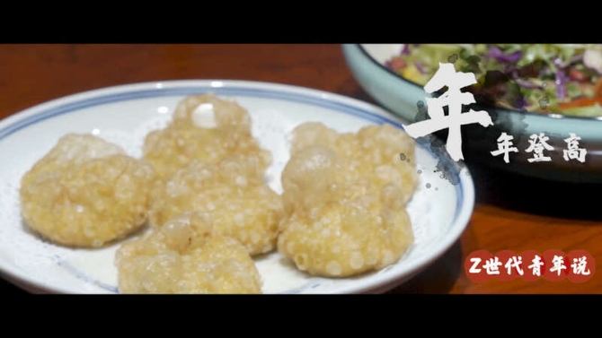 油炸年糕,“糕”同“高”同音,寓意“年年登高”。老百姓觉得在新春之际,吃上一口热乎乎的年糕,来年的生活事业也会随之步步高升。