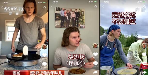 第一个要来认识的“老外”来自遥远的挪威,他的名字叫克里斯。在克里斯制作的短视频里,他会做馅饼、螺蛳粉、煎饼,还带着自己的家人一起品尝中国美食。短短一年多时间里,他的短视频作品在抖音、快手等平台获得超过两千万粉丝、上亿次点赞。