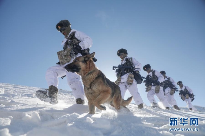 2月11日,驻守帕米尔高原的新疆喀什军分区某边防团托克满苏边防连官兵按计划对海拔5100米的山口实施例行巡逻。新华社发(姬文志 摄)