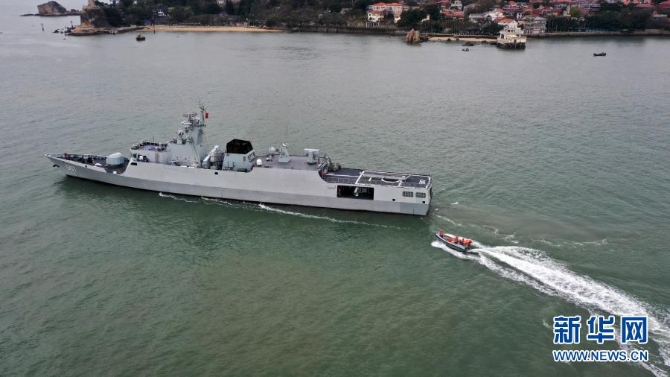 2月9日,海军铜仁舰从某军港解缆启航,奔赴某海域执行春节战备值班任务(无人机照片)。新华社发(周道先 摄)