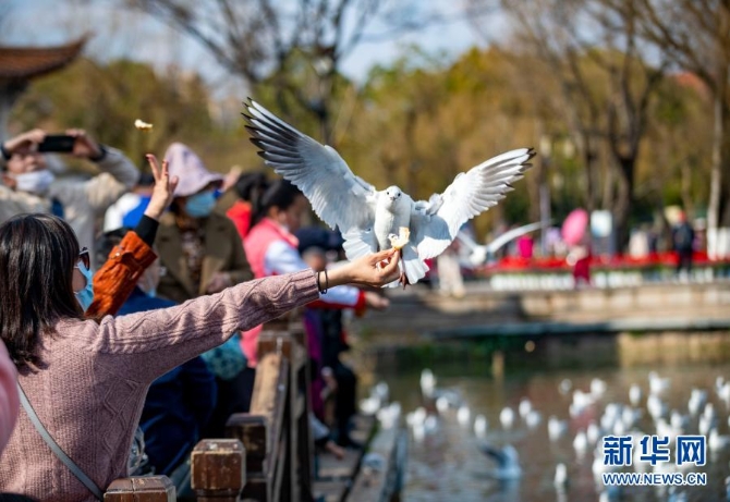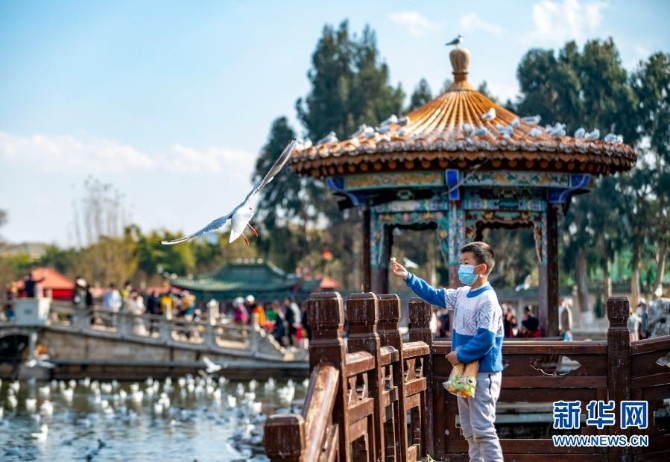 当日是大年初五,云南省昆明市大观公园里牡丹、郁金香盛开,不少游客到公园赏花、划船、喂红嘴鸥,欢度新春佳节。新华社 记者陈欣波/摄
