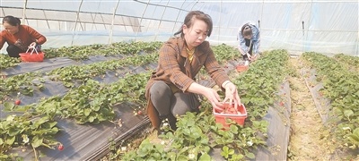 春节期间,沾益区龙华街道优质水果种植基地——曲靖绿冠农业有限公司祥云农庄的大棚草莓长势喜人,绿叶下一颗颗鲜红的草莓鲜红诱人、芳香扑鼻,每天带着孩子前来采摘的市民络绎不绝。