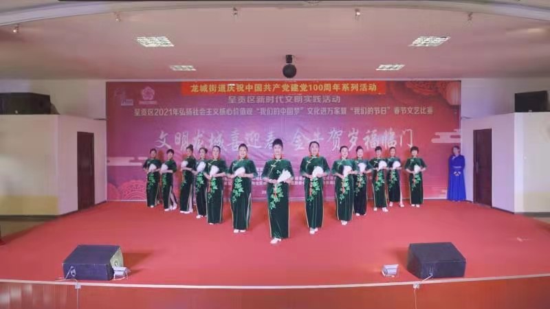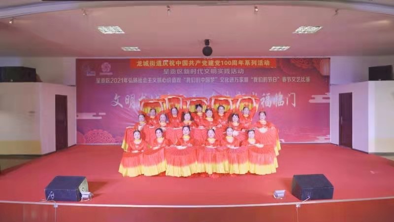 各社区积极参与此次春节文艺线上比赛,洛龙湖社区报送四个节目,众和社区报送三个节目、龙城社区、古城社区分别报送两个节目,龙街社区一个节目,参赛队伍表演形式多样,以舞蹈、小品、合唱为主。每支参赛队伍精心准备、认真排练、统一着装,只为把最好的舞台效果呈现给大家。开始投票时,各社区辖区内群众都积极推选自己心仪的文艺队伍,短短几天,投票页面访问量就破万。