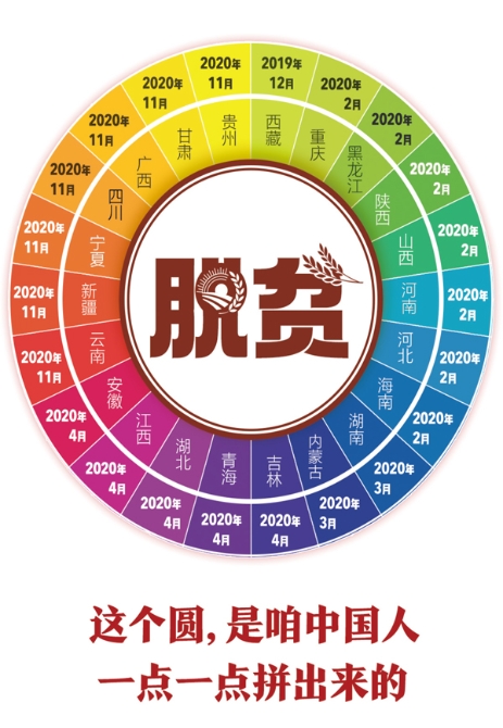 2020年11月23日,贵州省宣布最后9个贫困县退出贫困县序列。至此,国务院扶贫办确定的全国832个贫困县全部脱贫摘帽。这是22个省份宣布贫困县“清零”的时间示意图。 央视新闻供图