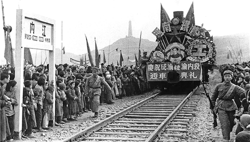 1952年7月1日,成渝铁路全线通车,实现了7000万西南人民长达半个世纪的夙愿。这一天,成渝两地万人空巷。“共产党万岁”“40多年愿望实现了,鞭炮响连天。永远跟着共产党,幸福万万年”的口号和歌声响彻天宇。