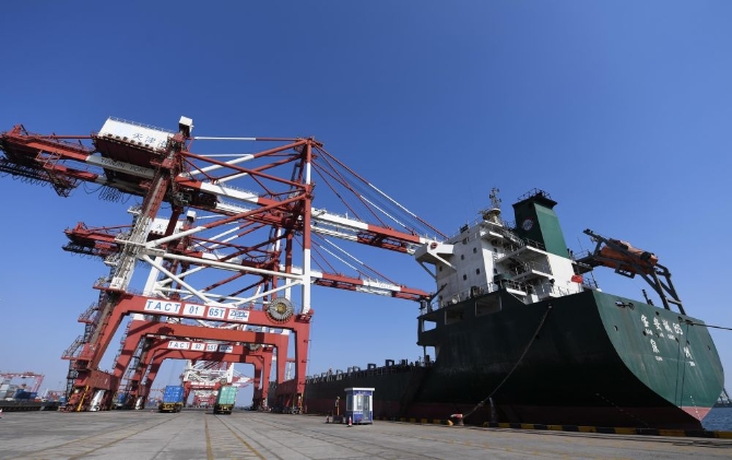 正月里,黄骅港货轮进出繁忙。