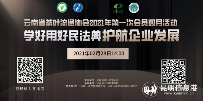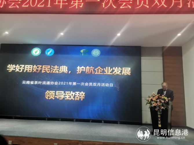 昆明信息港讯 记者李红鸾 为切实做好民法典学习贯彻工作,协助云南省茶叶流通协会会员学好、用好民法典,2021年2月28日,云南省茶叶流通协会举行2021年第一次双月活动日活动,活动携手协会法律顾问云南凌云律师事务所合伙人朱绍坤、部门副主任徐涛、唐瑞岭宣讲解读《中华人民共和国民法典》,护航企业发展。
