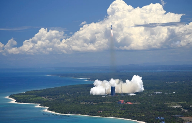 2020年7月23日12时41分,我国在海南岛东北海岸中国文昌航天发射场,用长征五号遥四运载火箭将我国首次火星探测任务“天问一号”探测器发射升空。新华社记者 郭程 摄