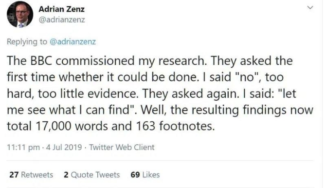 原来,本名Adrian Zenz、挂着学者名头的“郑国恩”,被西方媒体称作是“西方研究西藏以及新疆少数民族的权威专家”,实际上却是毕业于神学院的神秘人物。