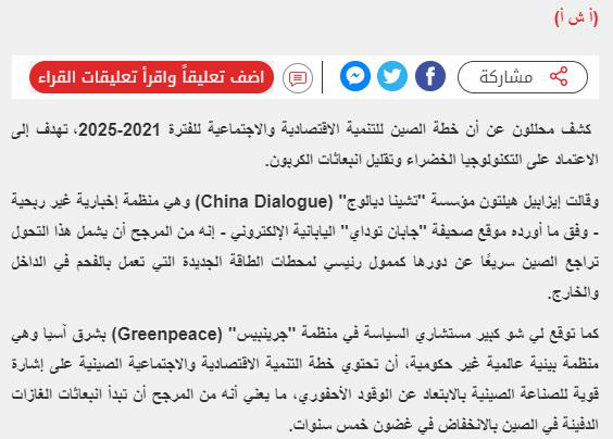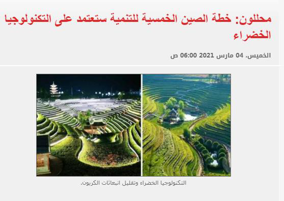 当地时间3月4日,埃及媒体重点关注中国未来五年发展计划。当地媒体《七日报》官网上发表题为《中国的五年发展计划将基于绿色技术》,文章中,分析人士对中国2021—2025年的经济和社会发展计划旨在依靠绿色技术并减少碳排放给予积极评价。
