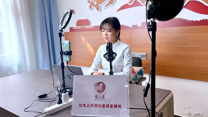 主播在工作的同时,也锤炼提升了党性修养。作为云南·昆明正能量网红孵化基地负责人,主播刘卓林受“红色之声”理论直播的影响,想要早日争取成为一名党员,她认为:“在党史学习的氛围下,作为一名群众,我觉得做这份工作充满了正能量,很光荣、很自豪,也想要尽快向党组织靠拢。”
