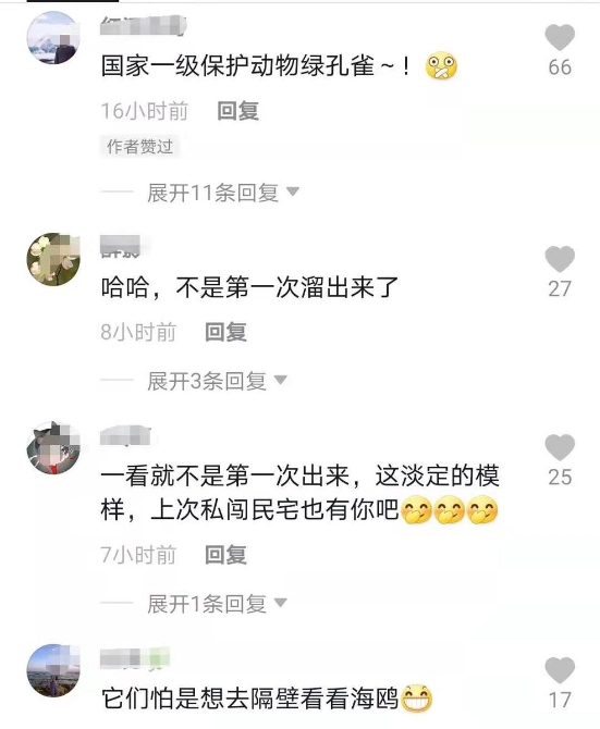 动管科的工作人员称,孔雀出逃逛街的情况时有发生。小家伙们如今已经很熟悉附近的环境,待它们逛够了之后便会自行返回动物园,市民们不必过于担心。
