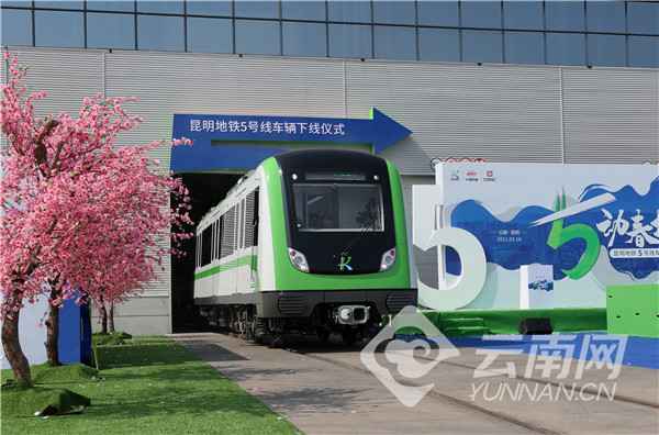 3月16日上午10时18分,随着一声嘹亮的鸣笛,一辆绿白相间的地铁列车缓缓驶出,标志着昆明地铁5号线首列车在昆明中车轨道交通装备有限公司(简称“昆明中车”)下线。这是昆明首款从试制到批量生产完全“昆明造”的轨道交通车辆。