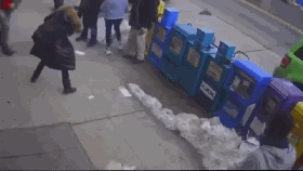 2月16日,纽约一家面包店外,一名52岁亚裔女性遇袭。网络视频截屏