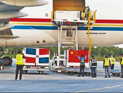 17日,中国政府援助多米尼加的一批国药集团新冠疫苗和注射器,以及多米尼加从中国采购的一批科兴公司新冠疫苗由中国货运航空公司包机运抵多首都圣多明各。多米尼加副总统培尼亚代表多米尼加政府和人民感谢中方慷慨援助国药疫苗,为多方采购科兴疫苗提供便利。