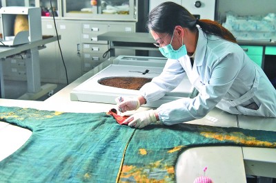 暗花绮袍己经修复完成。光明日报记者 王瑟摄