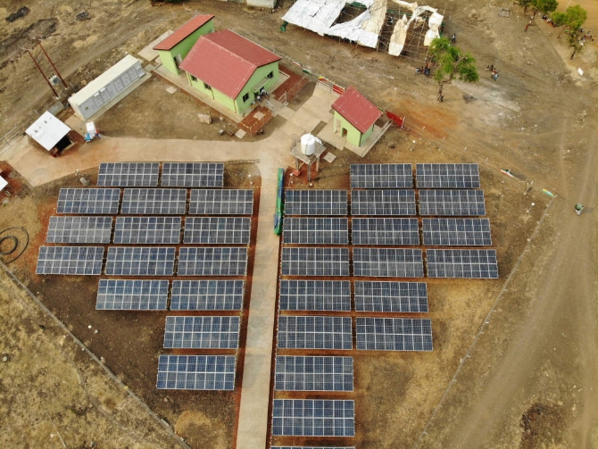 这是3月12日拍摄的中国国家电网中国电力技术装备有限公司与南京南瑞继保工程技术有限公司以联合体承建的埃塞俄比亚甘贝拉州离网光伏电站(无人机照片)。新华社发