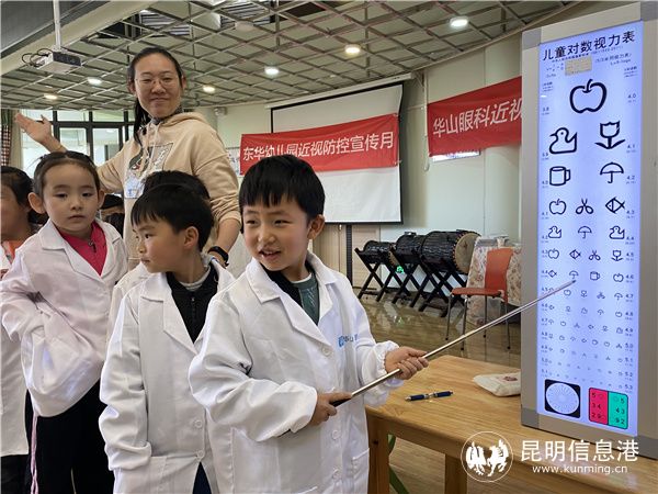 昆明华山眼科医院青少年近视防控办公室主任康伟介绍,华山眼科是昆明最早开设“青少年近视防控门诊”的专业眼科医疗机构,医院一直在参与昆明教育系统的近视防控筛查活动,已筛查了昆明市数十万中小学生。他认为,东华幼儿园将近视防控工作在幼儿阶段开展起来非常有意义,张园长所做的是在孩子幼儿园阶段“防”的工作,让孩子在入园的时候就筑起近视防控的第一道堤坝,这样前置近视防控工作布局在了孩子成长的第一步。