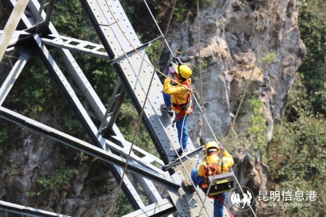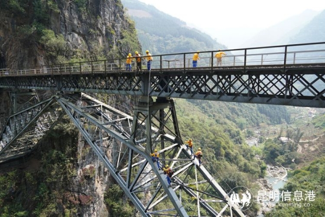 由于滇南地区雨季来临较早,防洪准备工作必须赶早做足。头一天已经申请了天窗点外计划,23日上午,中国铁路昆明局集团公司开远工务段开远桥路车间主任陶学刚带领湾塘桥隧工区11名职工,计划对人字桥进行汛前隐患排查。