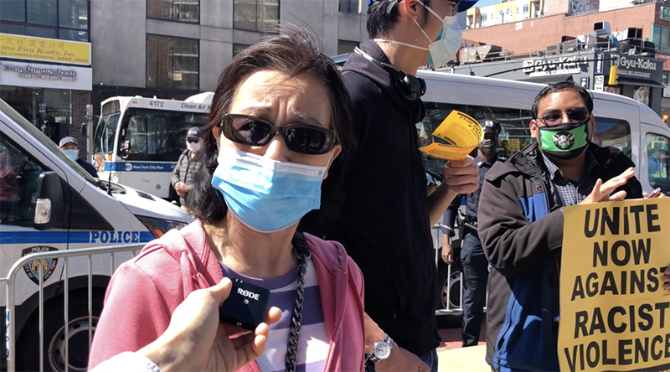 不到下午1时,大量示威者已经聚集在纽约市著名华人社区法拉盛的图书馆前,手举“反对歧视亚裔”“团结起来反抗种族暴力”等标牌,表达不满。其中还有很多带着孩子和老人一起前来的人。