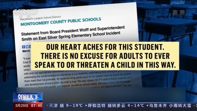 蒙哥马利县公立学校董事会主席和校长26日在一份声明中说,“我们感到非常心痛,成年人没有任何借口以这种方式对儿童说话或威胁儿童。”