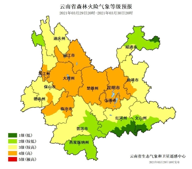 郭荣芬表示:“预计30日夜间到4月1日,滇西北将出现一次明显的降水过程,大的降水主要集中在迪庆和怒江地区,这对当地旱情和森林火险气象等级会有所缓解。本周云南省大部地区仍然没有明显降水出现,风高物燥的天气持续,目前正值清明前后,祭扫和外出踏青赏花的人数较多,请大家一定要注意防风防晒保湿和防火。”