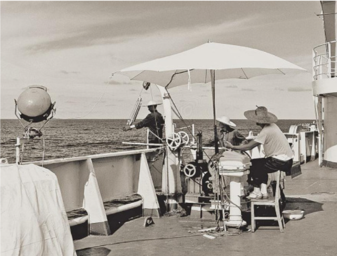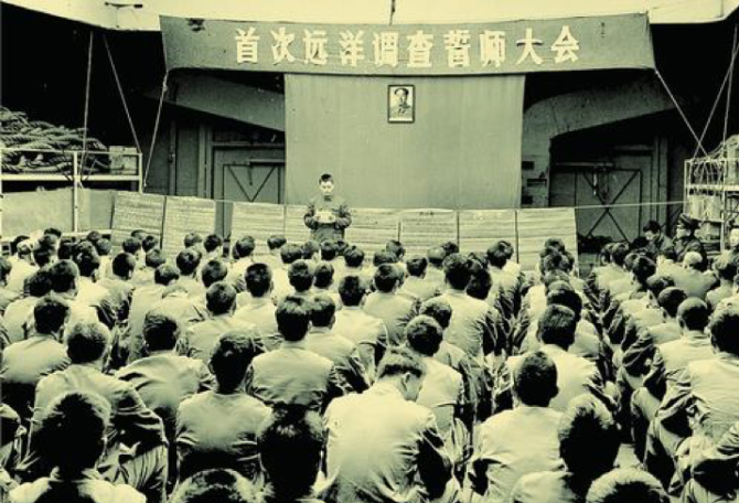 这一天,在“向阳红五号”的船舱里,科研人员举行了庄严隆重的誓师大会。大会上,各部门依次宣读决心书,个人代表纷纷发言,立志完成任务,整个会场口号声、掌声与喝彩声此起彼伏。然而,几乎所有船上人员都没有远洋调查的经验,对浩瀚的太平洋充满未知,出发前,甚至有人写好了遗书。
