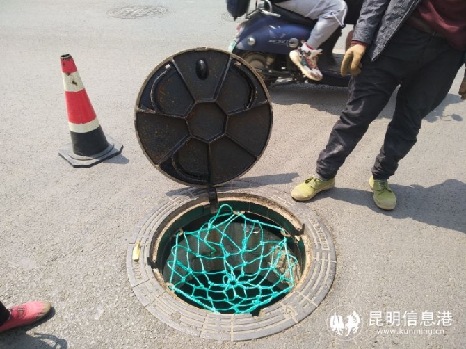 目前,施工人员正在给窨井安装防护网,他们介绍,这个网是装在井盖下面的窨井扣子上,尼龙材质,很结实,主要是防止铁质井盖被破坏或者挪走后人或物落入井内。在雨季,这个网也可以起到滤网作用,防止枯枝败叶大量进入窨井造成堵塞。