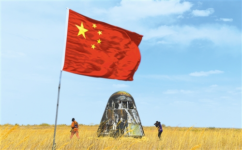 我国新一代载人飞船试验船返回舱二〇二〇年五月八日在东风着陆场预定区域成功着陆,试验取得圆满成功。汪江波摄(新华社发)