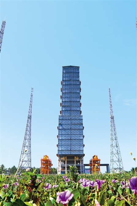 海南文昌航天发射场的长征七号运载火箭发射塔架。 新华社记者 曾 涛摄
