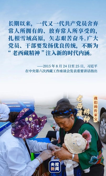 “缺氧不缺精神、艰苦不怕吃苦、海拔高境界更高,在工作中不断增强责任感、使命感,增强能力、锤炼作风。”2020年8月28日至29日,中央第七次西藏工作座谈会召开,习近平在座谈会上为 “老西藏精神”作出新的时代注解。