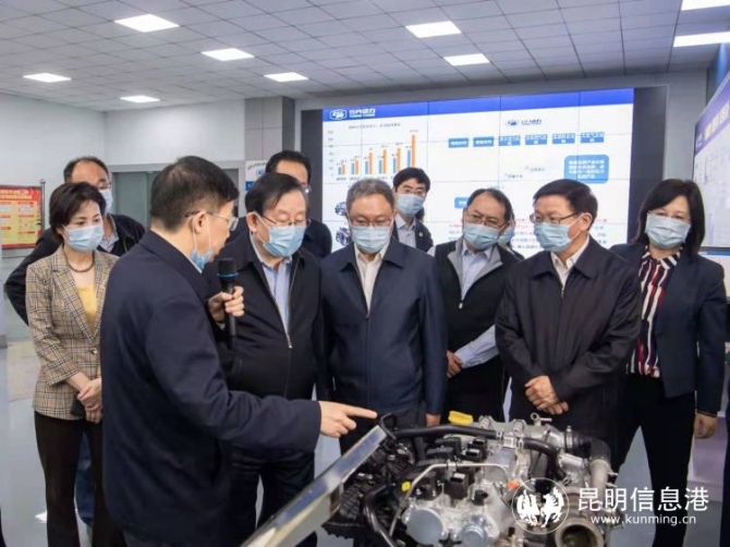4月1日,调研组来到中国(云南)自贸区昆明片区综合服务中心,参观办事服务窗口、24小时自助服务区等,听取情况汇报,详细了解窗口设置、政务服务、中心运转以及昆明片区制度创新、行政审批改革、优化营商环境等工作情况,万钢副主席对自贸区昆明片区改革创新、优化营商环境的探索和做法给予了肯定。在昆明云内动力股份有限公司,察看了技术中心智能车间、乘柴事业部,了解企业产业规模、智能化发展、产品研发销售等情况,与企业负责人就加快科技创新进行交流探讨。