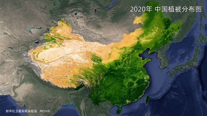 2020年中国植被分布图。(数据来源:MODIS)