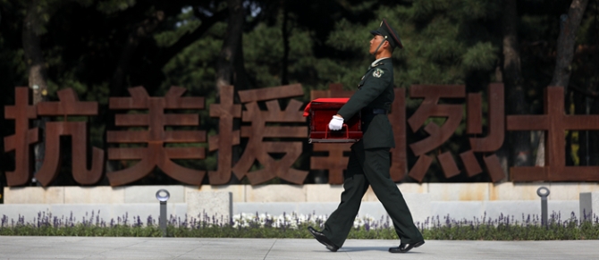 ↑2020年9月27日,志愿军烈士的遗骸抵达沈阳抗美援朝烈士陵园。新华社记者 姚剑锋 摄