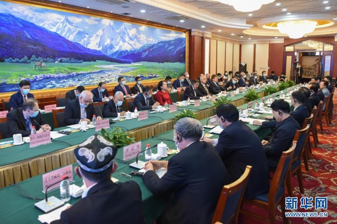 4月2日,由外交部和新疆维吾尔自治区共同主办的“新疆是个好地方”交流会在乌鲁木齐举行,正在新疆参观访问的上海合作组织秘书长弗拉基米尔·诺罗夫及有关国家驻华使节和外交官一行30多人参加。与会外宾表示,新疆近年来发生的深刻变化有目共睹,各族民众的基本权利得到了有效保障,他国不应对此说三道四,更无权干涉中国内政。新华社记者 丁磊 摄