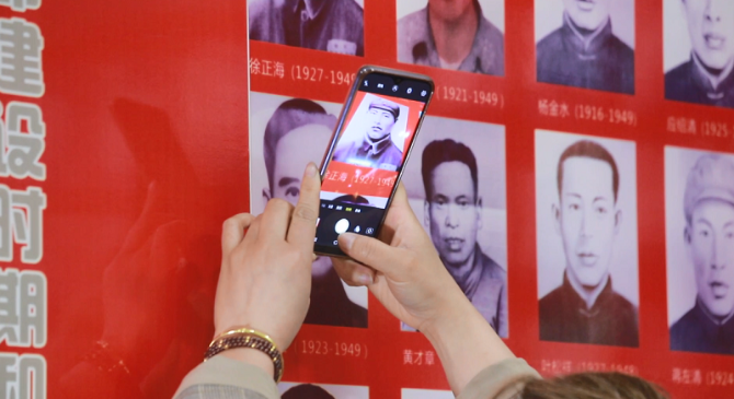 徐秋菊年事已高,行动不太方便。孙女徐耐劳就把烈士陵园英烈墙上徐正海的照片翻拍下来给老人看,爱心人士还免费制作了动态图,这让徐秋菊老人特别开心。