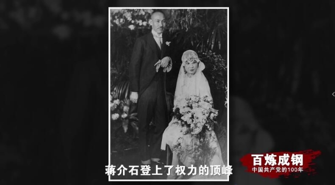1927年12月1日,春风得意的蒋介石与宋美龄在上海举行了隆重的婚礼。踏着共产党人的鲜血,蒋介石登上了权力的顶峰。