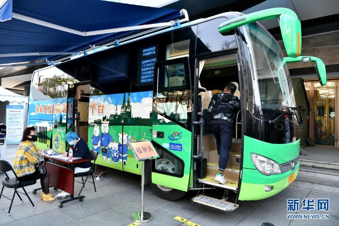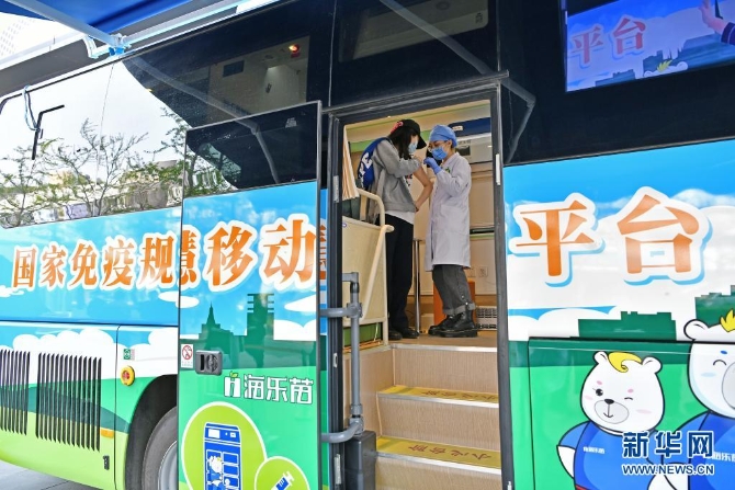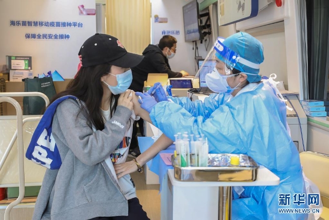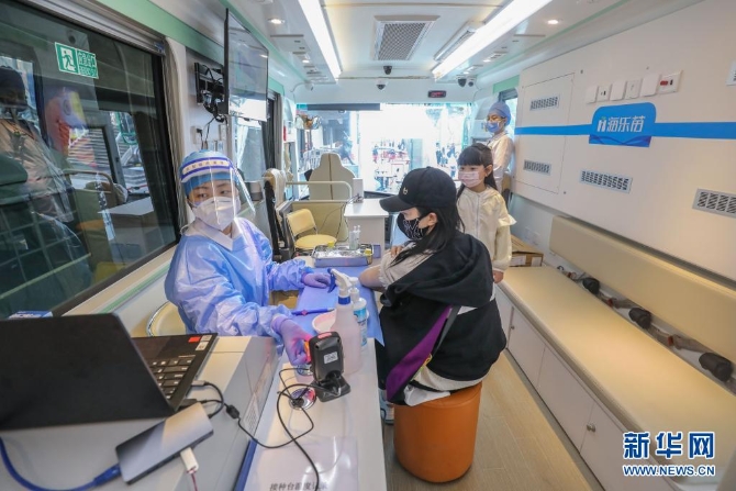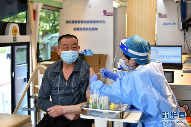 4月7日,市民在移动疫苗接种车上接种新冠疫苗。新华社记者 李鑫 摄