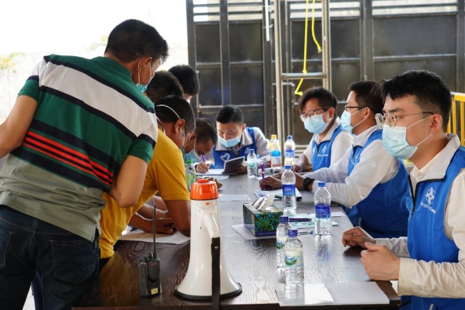 中国港湾公司科伦坡房建项目商务部经理郑斌就是“蓝马甲”服务队一员,承担着现场后勤总协调的任务。他告诉记者,科伦坡接种点就设在中国港湾的一个营区,企业接到任务后在一周内便完成了从设计、筹划、改造、运营和正式投入使用的全过程。