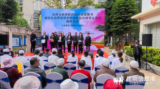 昆明信息港讯 记者杨锋 4月8日上午,昆明市首家精神障碍社区康复服务站点—民康爱心驿站在五华区丰宁社区揭牌,昆明市主城区精神障碍人员社区康复服务项目随之正式启动。省、市、区民政部门相关领导出席了启动仪式。