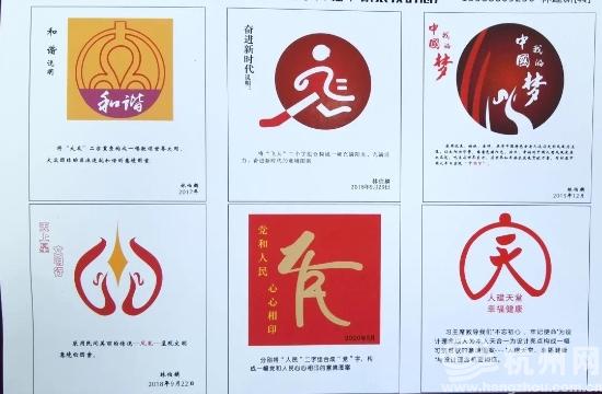 从2015年起,林伯麟怀着对党和祖国的热爱,开始着手设计有关党的LOGO。“去年武汉因新冠疫情封城,我们党中央全力支援武汉,我很是感动。后来,武汉好了,我们全中国的疫情控制住了,这一切都离不开党一心为民、以民为主的理念,由此迸发了我的创作灵感。我想把党对人民好都画出来。”林伯麟展示出这枚“党民心相印”的LOGO,他说,这是他所有作品中最喜欢的一个设计。