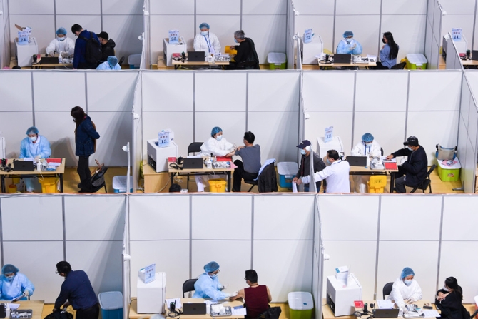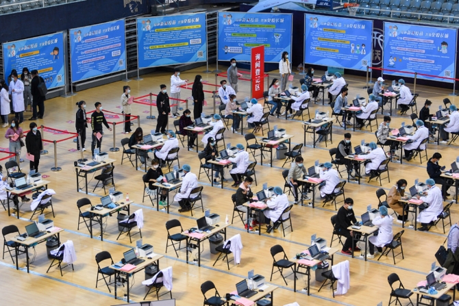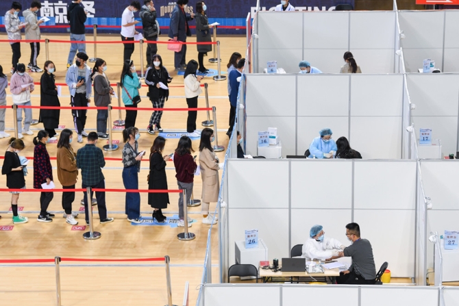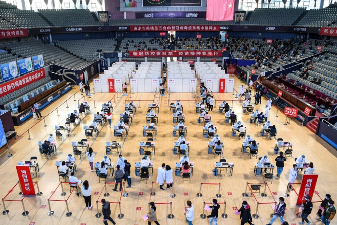 近日,江苏省南京市在鼓楼区五台山体育中心设置新冠病毒疫苗集中接种点。这是目前南京市最大规模的集中接种点,单日接种量可达10000剂次。 新华社记者 李博 摄
