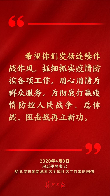 大城重启,总书记给武汉东湖新城社区全体工作人员回信,希望他们用心用情为群众服务,再立新功。